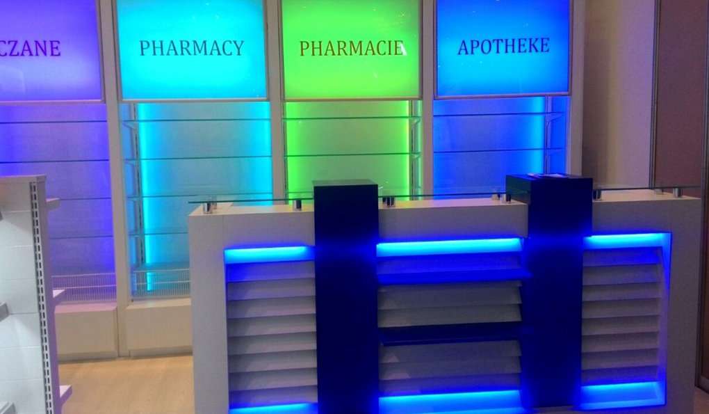 In addition to our superior metal processing capability, we can provide tailor-made solutions for pharmacies thanks to our ability to use different materials such as wood, glass and acrylic. With our lighting products we are able to transform pharmacies into attractive shopping points.
