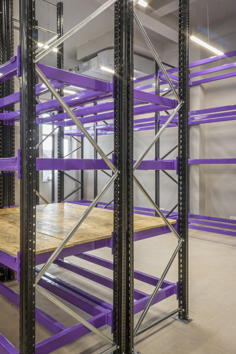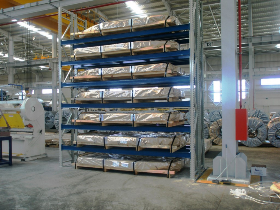 The main structure is formed with different profile sections of 55-95-120 mm produced in roll-form machines and carrier beams in different sizes. A wide variety is available according to the type and weight of the product to be stocked; vertical carrier legs, horizontal carrier beams and other complementary accessories are determined. A specific layout plan can be drawn up depending on how the stacking truck should be used.