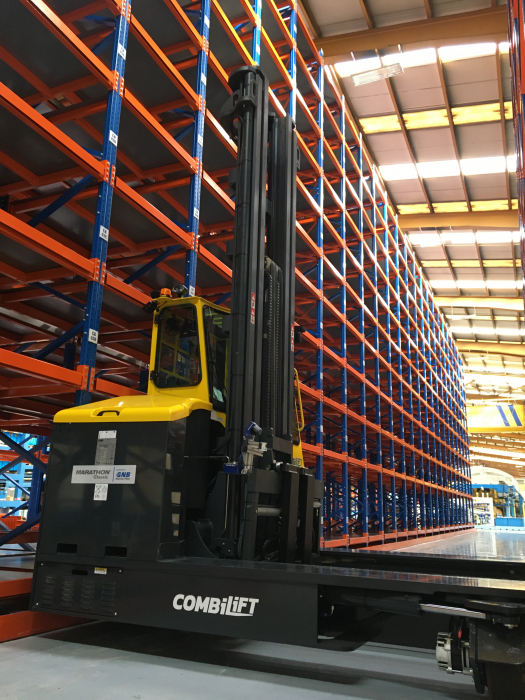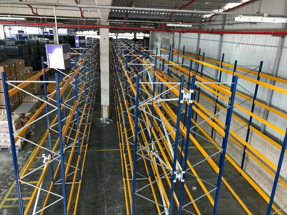 - Works in accordance with the principle of maximum storage within a minimum area by allowing the use of narrow space forklifts in high warehouses.