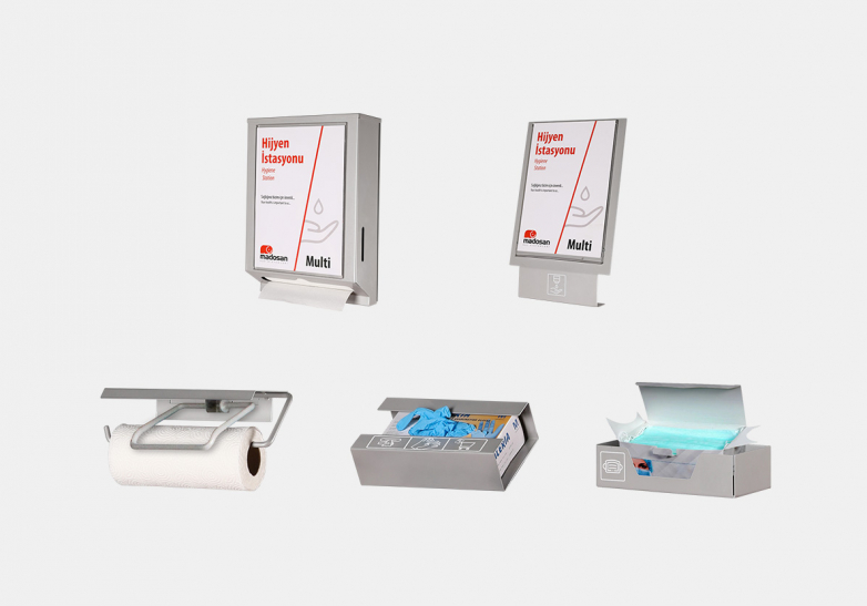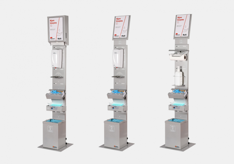 Kullanılacağı ortam ve ihtiyaç duyulacak aksesuarlar dikkate alınarak farklı konfigürasyonlara imkan sağlayan Multi Hijyen İstasyonu, aynı anda birçok ihtiyacı karşılayabilecek şekilde tasarlanmıştır. Basit geçmeli sistemle montajı kolay ürün, sağlam metal gövdeye sahiptir.